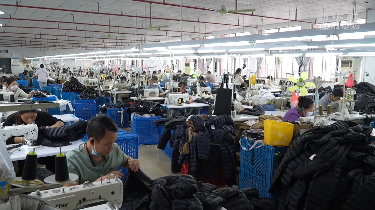 浙江平湖:羽绒服订单迎旺季 服装企业赶工忙