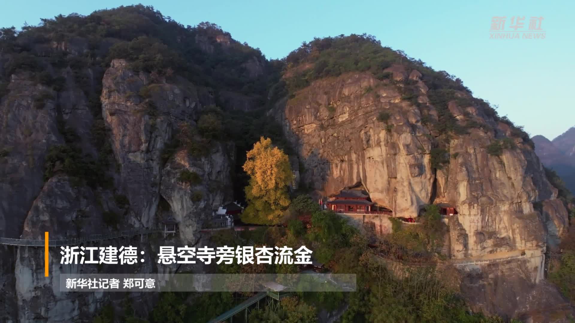 浙江建德:悬空寺旁银杏流金