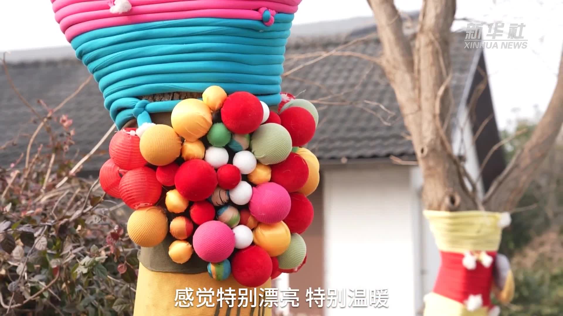 杭州余杭:树木穿上环保“时装” 山村迎新年氛围浓