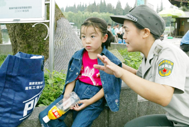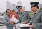 女执法队员为外国游客指路
