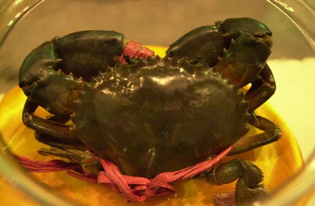 9月25日,在浙江省三门县举行的首届中国青蟹节“青蟹王”拍卖会上,一只重1,37公斤的青蟹以40万元天价由杭州卷烟厂竞拍成交。该蟹为本地品种,由三门县一位名叫倪永平的养殖户经过两年时间养殖而成。