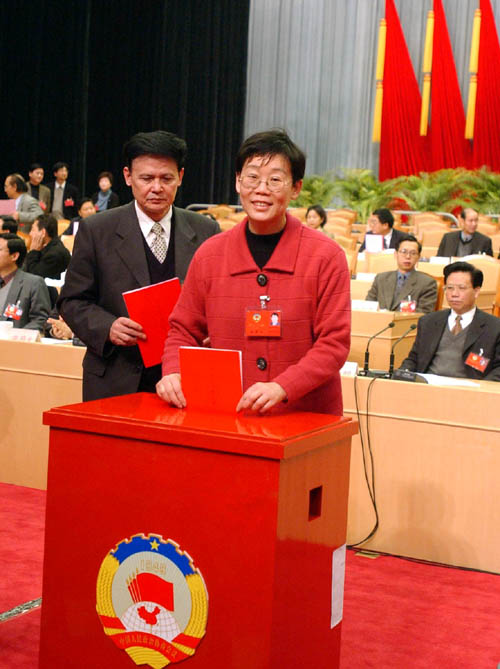 新华网浙江频道1月21日电 投下神圣的一票。图为新华社浙江分社副社长、省台联理事林楠委员等在主席台上投票。