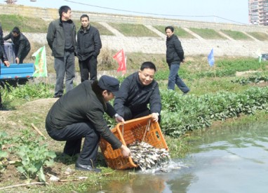 10余万尾鱼苗放入剡溪