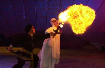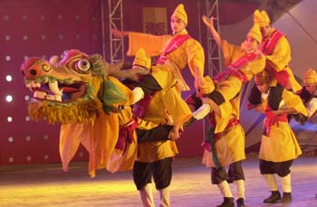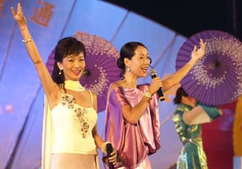 在京鼓齐鸣声中,晚会拉开了序幕。由杭州歌舞团表演的歌舞“踏青”和周志华、徐筱安表演的小锣书“南线故事会”,把日常的生活现象和艺术加工有机的结合起来,获得了观众的热烈掌声。而接下来的节目则是用各种艺术形式有机的表演了一些在杭州生活过的历史人物和一些传说人物,比如用昆乐演唱的“李清照”、舞蹈“梁祝”、千年秀“济公”等,自然深合杭州人的脾胃,获得满堂红自是意料之中;晚会的重头戏自然是用来表现杭州最具知名度的传奇人物白娘子了,对此,导演也煞费苦心,用京剧、越剧、武戏组合和歌曲演唱四种不同的方式把白娘子的故事串联了起来,手法独特,颇据可看性。而由于歌曲的演唱是邀请了曾经出演过白娘子的港台艺人赵雅芝、叶童,更是掀起了晚会的高潮。