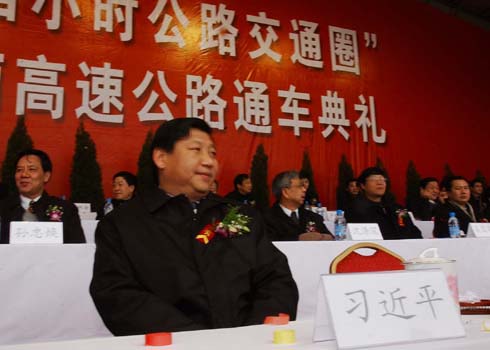 中共浙江省委书记、浙江省代省长习近平同志在浙江“四小时公路交通圈”暨杭金衢高速公路、金丽高速公路典礼上。