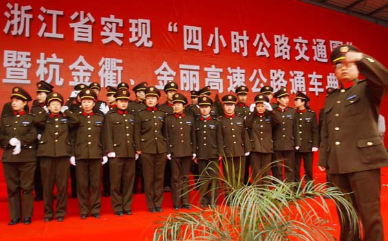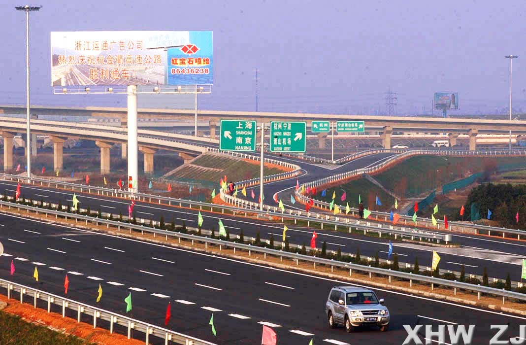 杭金衢高速公路金华互通区两侧彩旗招展,从此驶出了通往全省各地的第一批车辆。 |