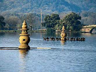 | 新西湖十景之阮墩环碧 旧名阮公墩,嘉庆初年浙江巡抚阮元疏浚西湖后利用葑泥堆成。更多>> |